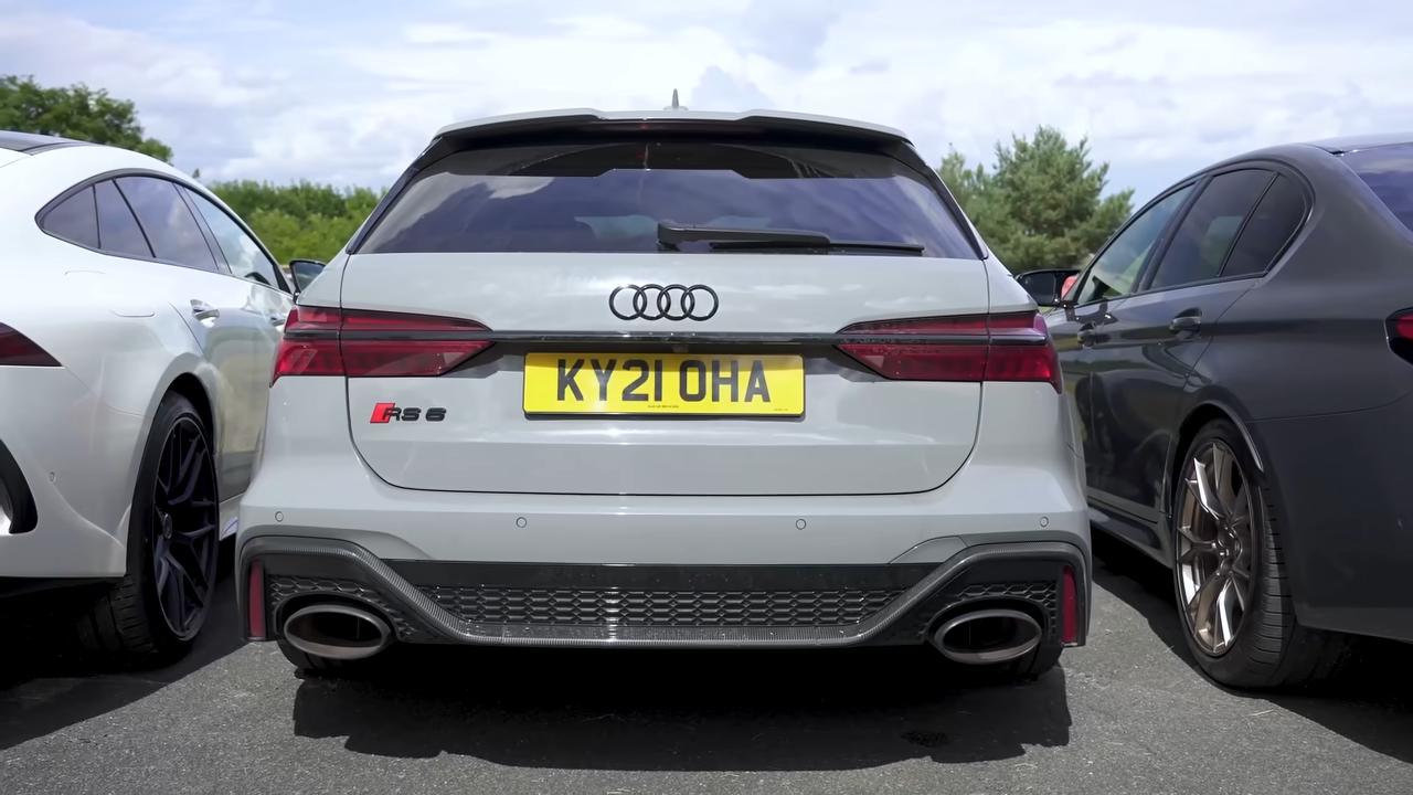 Audi RS6是基於Audi A6 Avant打造出來的車型,換上22吋鋁圈以及RS專屬的後輪爆龜,跟BMW一樣,它們都是由一般車型所延伸出來的性能車款。車尾設計也是相當不錯,而方正的外型意味著內部的空間使用上比斜背設計要來的更好。整個黑化的車頭設計也是近年RS系列的特色之一。