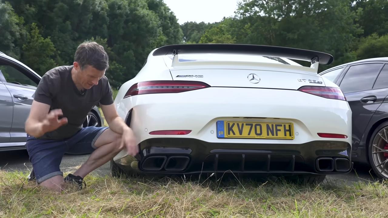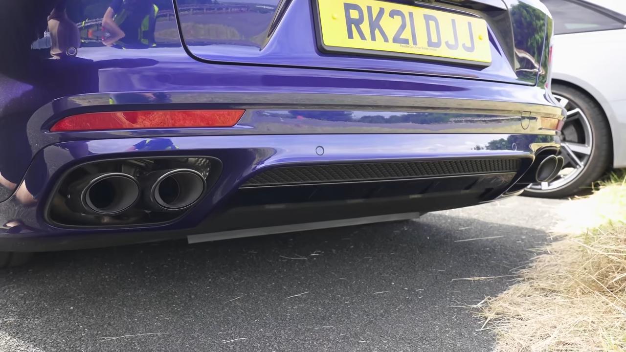 來到AMG GT 4-Door,雖然看起來像四出排氣管,但事實上只有雙邊單出的設計,後面是假的尾飾管。排氣聲浪聽起來相當猛爆,比RS6跟Panamera都還要好。